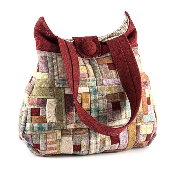 Wonderfully slouchy tweed bag sewing pattern, incredibly on trend using Abraham Moon's Legacy range of tweed. Stacks of room inside but a neat and secure top to keep your valuables safe. This tweed bag is made from wonky log cabin blocks a liberated style, which means that there is very little measuring involved.