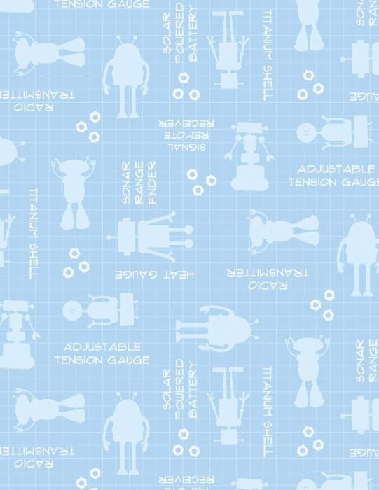 Alpha-Bots Fabric | Robots & Words Sky Blue