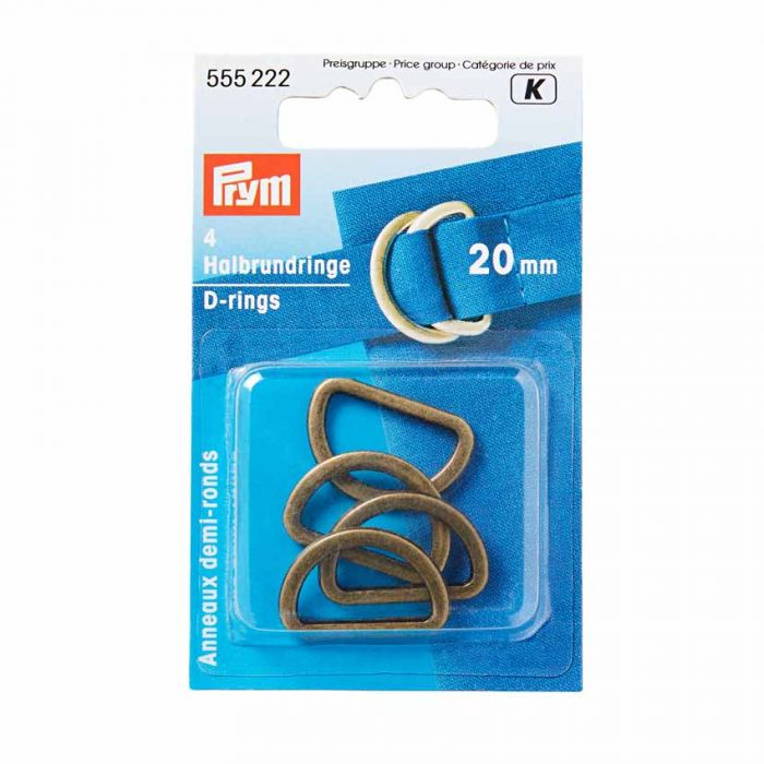 20mm Antique Brass D-Rings - Ideal for securely attaching bag handles. Superb quality and finish. Prym Superior manufacturing.
