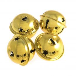 Pack of 4x 40mm classic coloured Jingle Bells with festive star detailing.