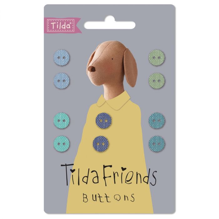 Tilda Chambray Fabric Covered Buttons - Cools - 9mm Pack of 10