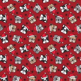 Christmas Jersey Fabric | Festive Pug Silver Grey