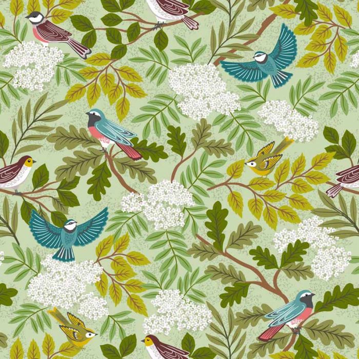 Clearbury Down Lewis & Irene Fabric | Clearbury Birds Pale Green