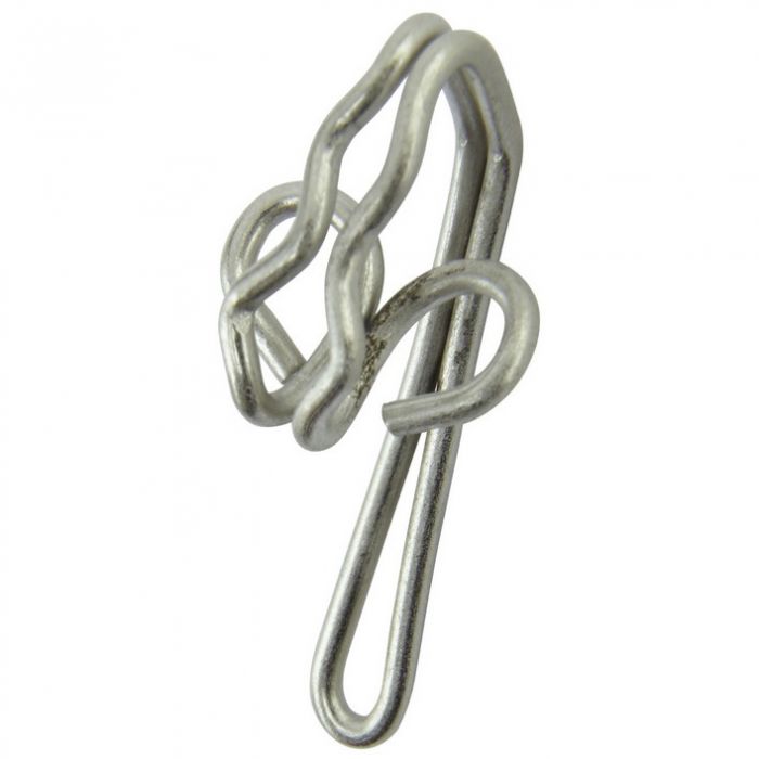 Silver coloured metal hook for use with most curtain heading tapes, tracks and poles, but particularly ideal when paired with metal tracks or fittings.