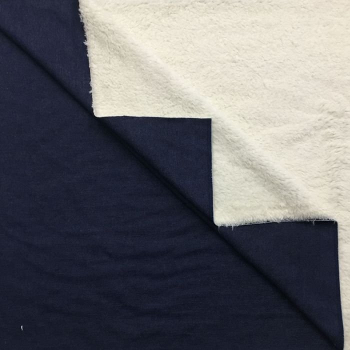 Denim backed with luxurious fur fleece fabric. Ultra versatile perfect for providing warmth to projects including clothing, backings and more.
