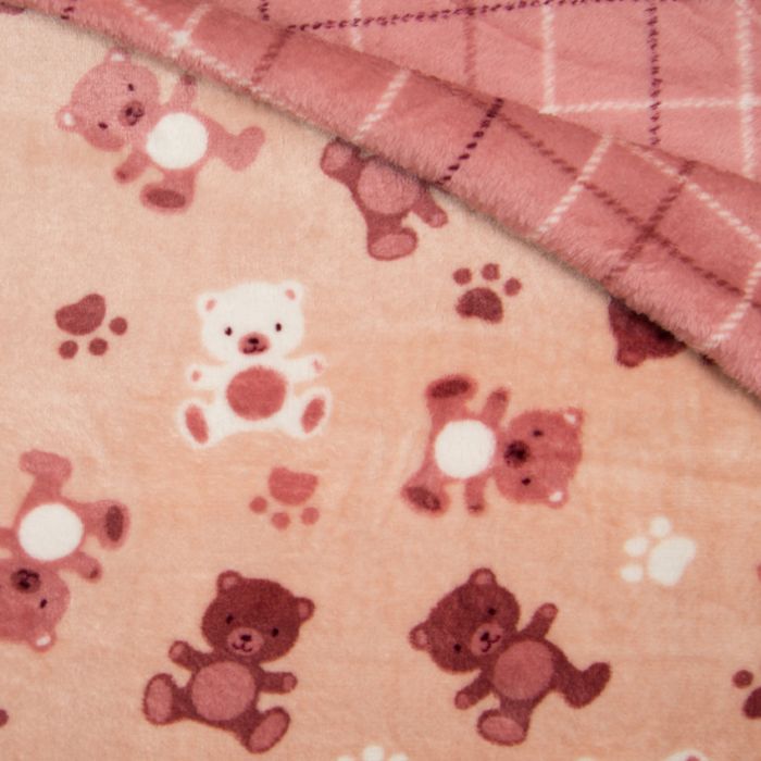 Double Sided Supersoft Fleece | Bears - Check Pale Pink