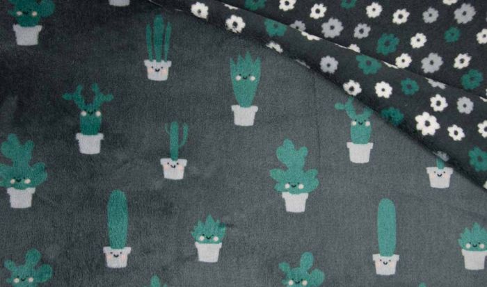 Double Sided Design - fantastically soft fleece featuring a Cactus design front & Flower reverse. Ideal for dressing gowns & children's projects - just makes you want to cuddle it!
