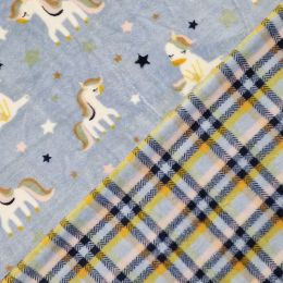 Double Sided Design - fantastically soft fleece featuring a Unicorn design front & Checkers on reverse. Ideal for dressing gowns & children's projects - just makes you want to cuddle it!