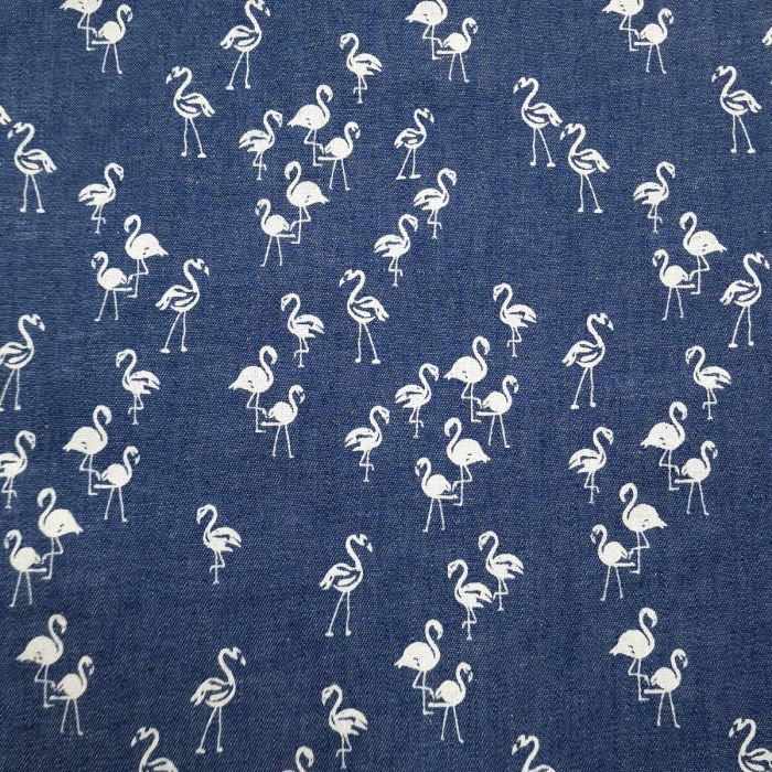 Long Island Printed Denim | Mini Flamingos Dark Blue