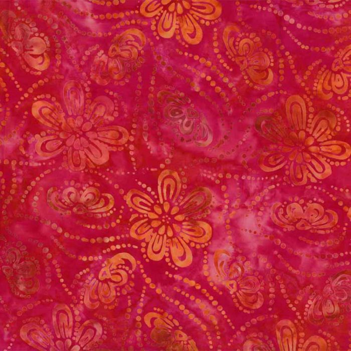 Prismatic Colour Splash Batik Fabric | Floating Flowers Red/Orange