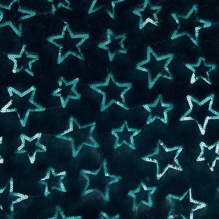 Midweight Faux Fur Fabric with a stitched sequin star design embedded in the surface.