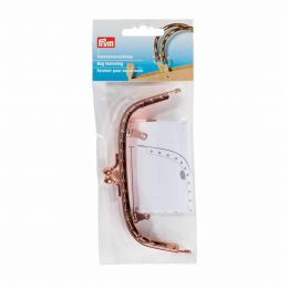 Prym bag fastener and decorative rectangular frame. Gold coloured with engraving detail to add that special something to your fabric bag project. Two loops are integrated so a long handle or strap can be added.