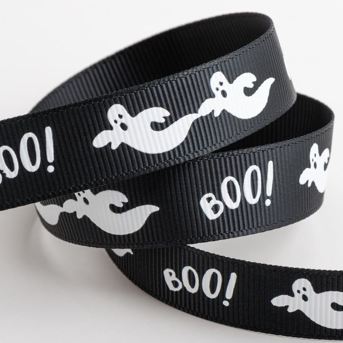 Ghost Boo Halloween Grosgrain Ribbon | 16mm x 5m Roll