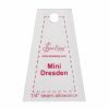 2.5" x 1.7". A clear mini template which makes fussy cutting, English paper piecing and small patchwork projects quick and easy to prepare and cut out. Ideal for jelly rolls / design strips etc.