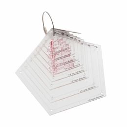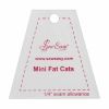 2.58" x 2.5". A clear mini template which makes fussy cutting, English paper piecing and small patchwork projects quick and easy to prepare and cut out. Ideal for jelly rolls / design strips etc.