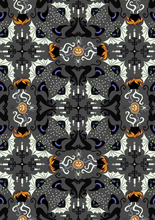 Haunted House Fabric | Glow In The Dark Hats, Cats & Bats Black