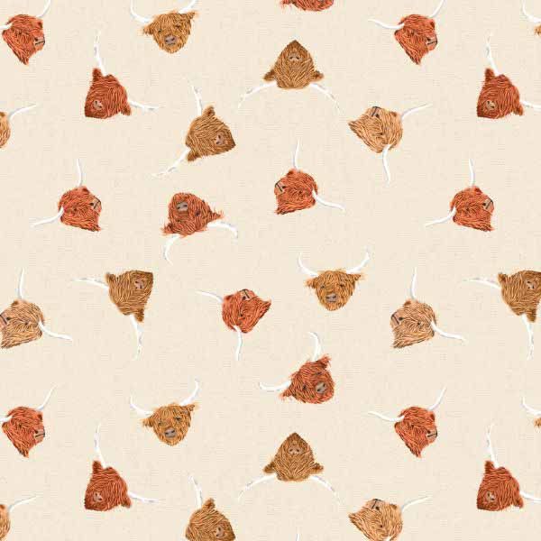Highlands Lewis & Irene Fabric | Highland Cows Light Cream