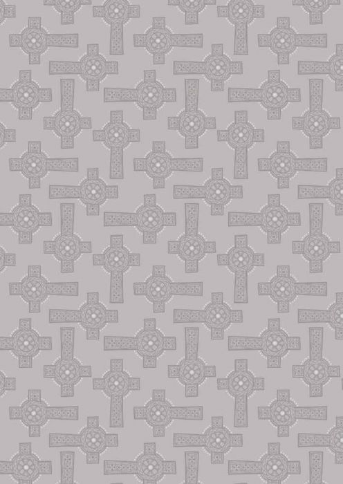 Iona Fabric | Celtic Cross Grey - Silver Metallic