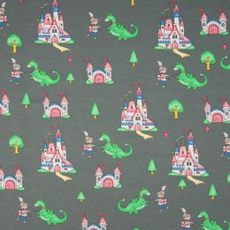 The fabric is mid-weight jersey with impeccable print quality. Extremely high cotton content ensures the fabric has a lovely feel.