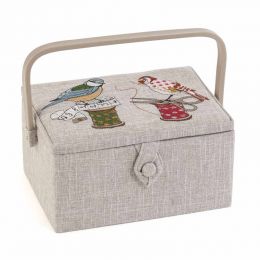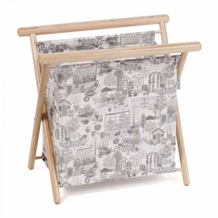 Collapsible knit-sew made from 100% cotton fabric on wooden frame. Internal see through plastic storage pocket. Perfect for storing knitting and sewing projects. Easy to store when not in use. Spot clean only. Item size: (d/w/h) 22 x 36 x 36cm.