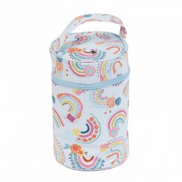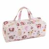 Soft knitting bag made from 100% cotton fabric in a Knitty Sheep print. Zippered section with compartments to hold knitting pins. Double handles. Eyelet for feeding through yarn. Perfect for storing knitting projects, yarn and pins up to 40cm long. Spot clean only. Item size: (d/w/h) 14.5 x 45 x 17cm.