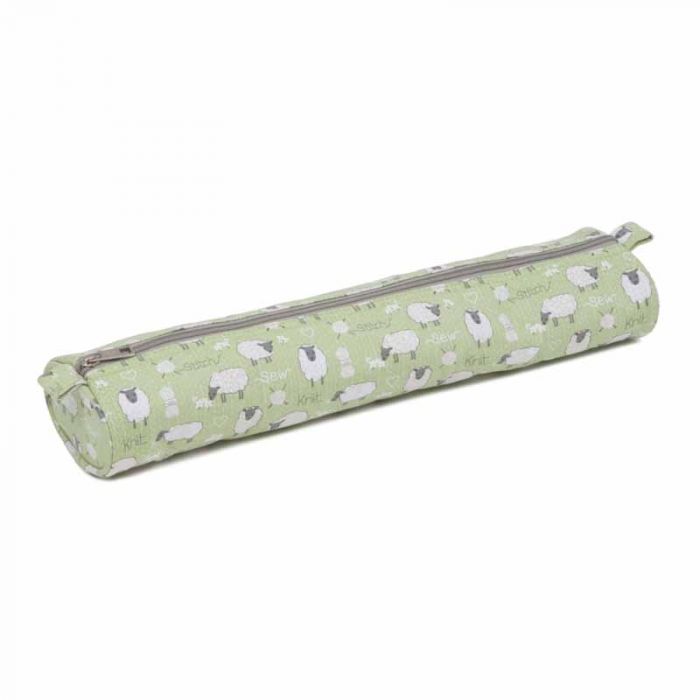 Extra long soft, zippered knitting pin case made from 100% cotton fabric in fun sheep design. Long enough to store even 40cm knit pins. Spot clean only. Item size: (d/w/h) 12 x 46 x 7.5cm.