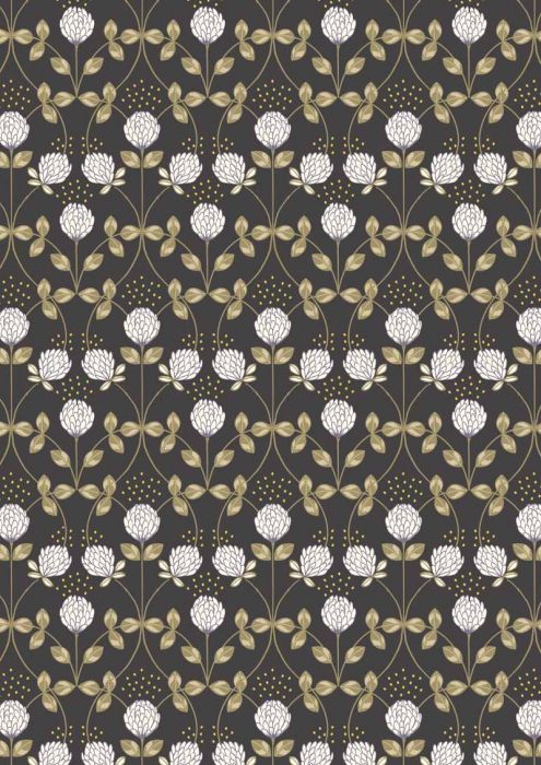 Lewis & Irene Honey Bee Fabric | Clover Charcoal - Gold Metallic