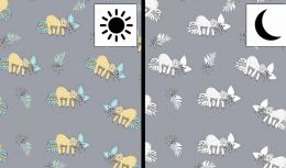 Cotton-rich jersey fabric with magical Light Reactive design. The fabric shows one design in 'standard indoor' light and displays an array of colourful shades when is then exposed to the UV rays in sunlight.