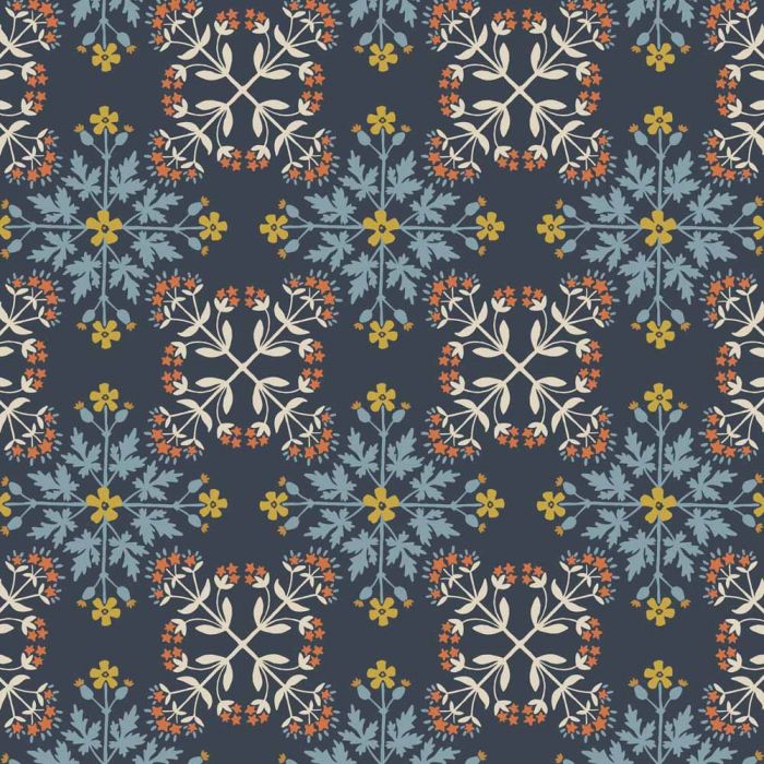 Majolica Lewis & Irene Fabric | Floral Tile Dark Blue