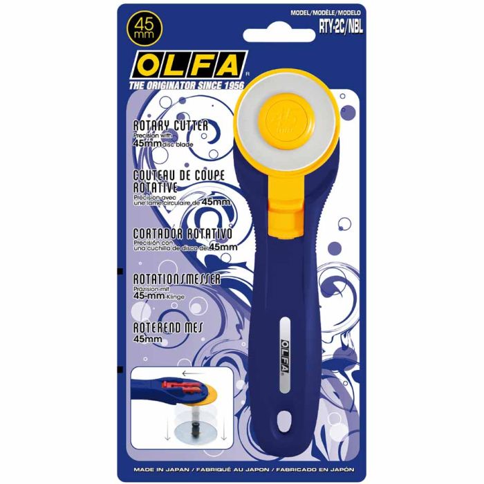 The all-time popular 45mm rotary cutter size from Olfa. With quick and easy replacement, in a new colourful Navy Blue design, the cutter is perfect for your sewing room.