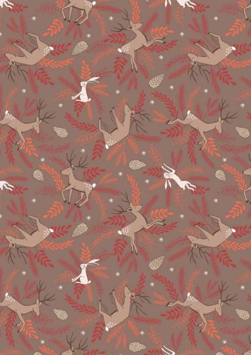 Pure cotton craft and quilting fabric created by Lewis & Irene. The new forest, near to the designer's home, is a magical place in winter and particularly during the Christmas period - we hope you feel some of that special festive magic with the designs in the range.