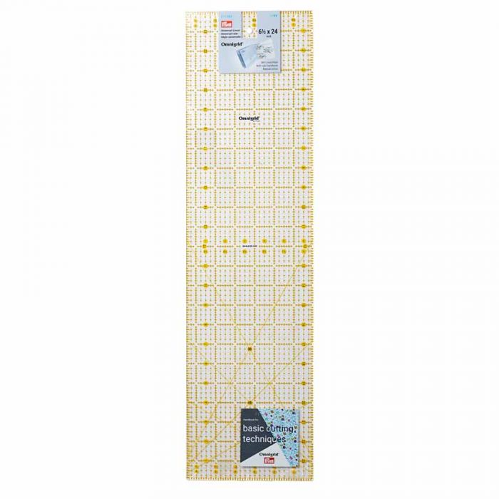 Omnigrid 6.5 x 24 inch ruler with 30°, 45° & 60° angle markings. Ideal for a range of sewing projects including dressmaking, patchwork & upholstery the Prym Omnigrid Brand is the global mark of excellence in textile ruler accuracy and practicality.