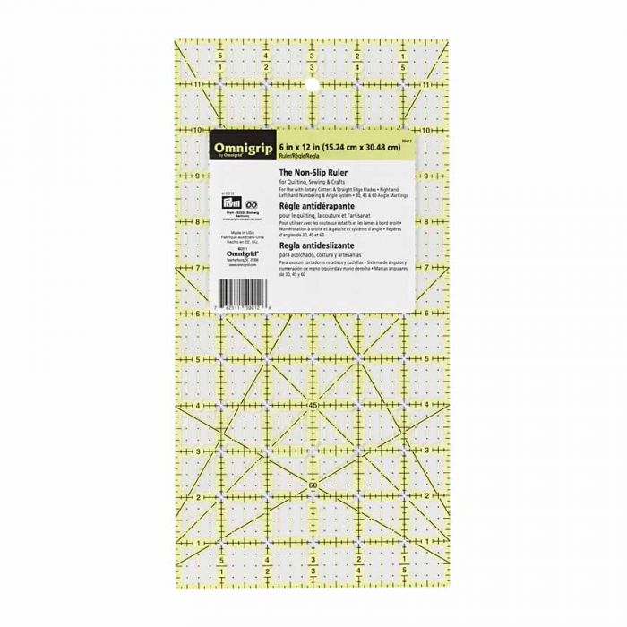 Omnigrip 6 x 12 inch square ruler with 30°, 45° & 60° angle markings. Ideal for a range of sewing projects including dressmaking, patchwork & upholstery the Prym Omnigrip Brand is the global mark of excellence in textile ruler accuracy and practicality.