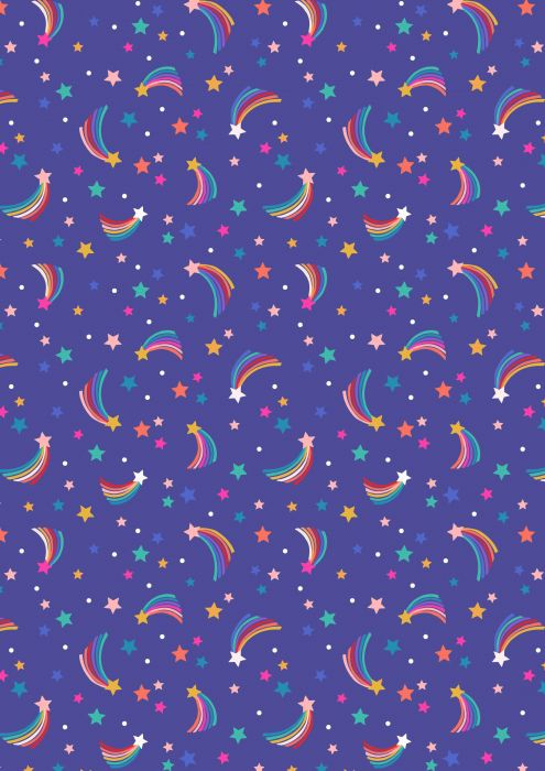 Over The Rainbow Fabric | Shooting Rainbow Stars Blue