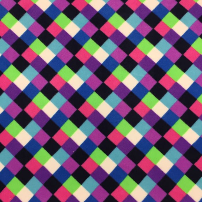 Check with blue background Printed Anti Pil Fleece - a super all rounder.