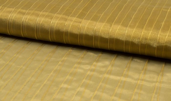 A super quality organza with a repeating corded stripe across the length which adds a nice dash of detail plus gives just a touch of body to the naturally flowing fabric.