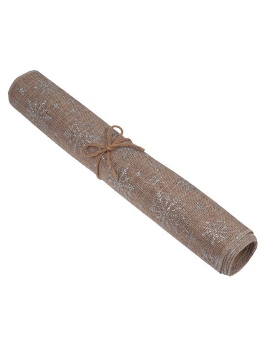 Rustic style fabric roll embellished with a snowflake design. Perfect for sewing into small gift bags, decorations plus can be used to create table decorations and place settings.