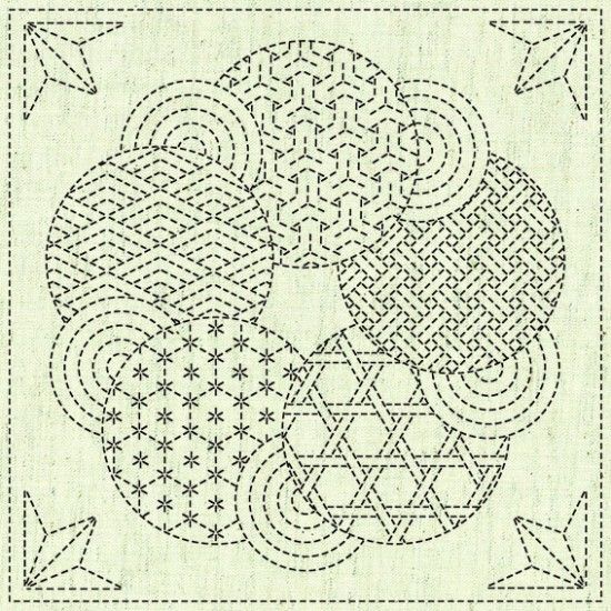 85% Cotton / 15% Linen hand-printed traditional cloth with design for stitching a classic Sashiko pattern.