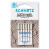 Schmetz Stretch Sewing Machine Needles. Designed with a medium ball point and a specially designed eye & scarf area to prevent skip stitches with highly elastic materials.