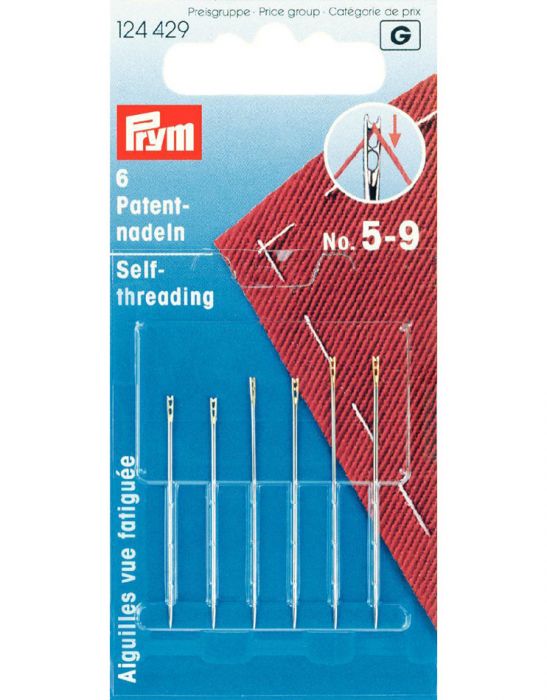 Prym Self Threading Gold Eye Needles. The Patented split eye enables easy threading, particularly useful if you have difficulty seeing the needle eye and thread.