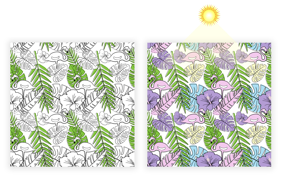 Prepare To Be Amazed! We are absolutely delighted to introduce this brand new range of Light Reactive Fabrics. Displaying a design when in standard indoor light the pattern transforms literally before your eyes as the fabric is exposed to the uv rays in sunlight and a multitude of colours appear. More info & view designs…