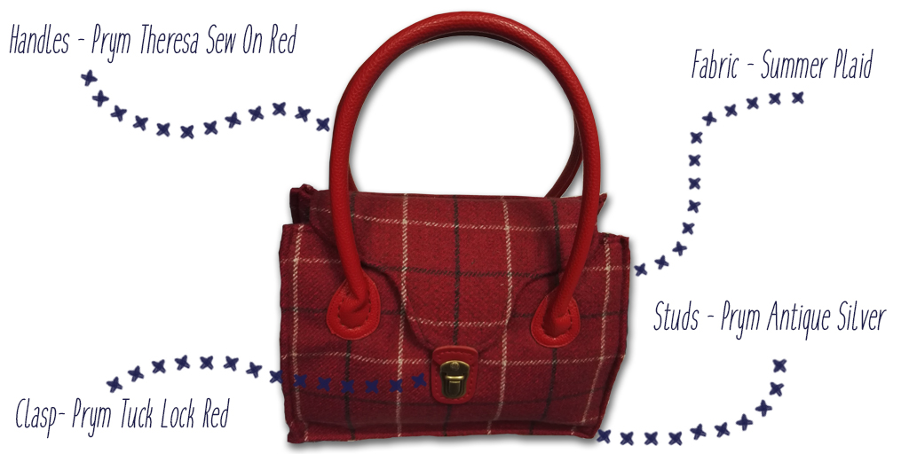 New range of bag handles now available from Empress Mills. Plus learn more about a recent sample bag created by Sheila including the handles, clasps, fabrics & studs used to create the perfect finished piece…