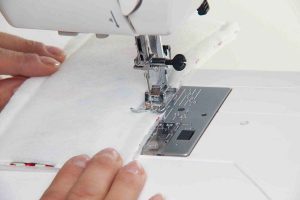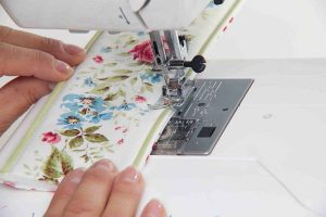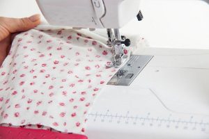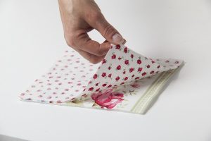 Turn the work inside out and stitch along the sides with a 0.5 cm seam.