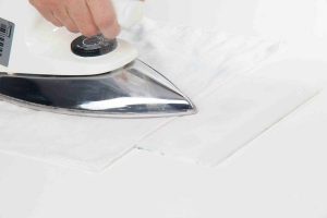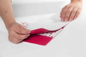 Lay H 640 onto the wrong side of the outer fabric parts and iron it on (press on firmly step by step using a damp cloth, 15 sec., 2-3 dots).