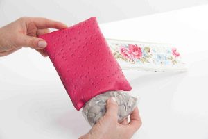 Turn the work inside out, fill in the weighting material and sew the opening closed by hand.