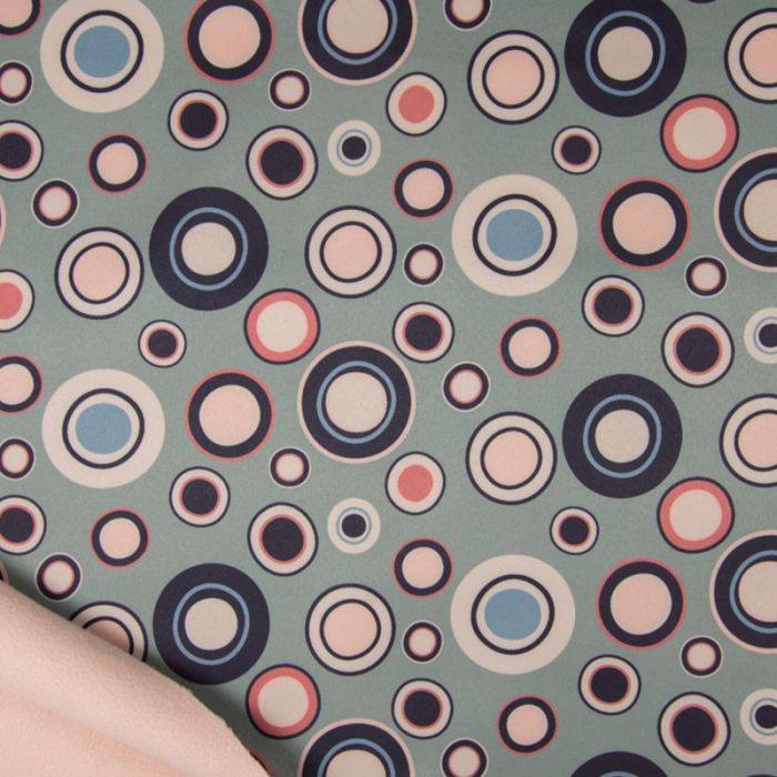 Soft Shell Fleece Fabric | Irregular Circles Dusty Green