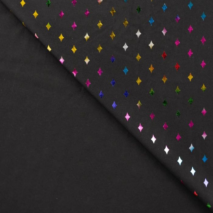 Soft Shell Fleece Fabric | Foil Print - Diamonds Black Multi Foil