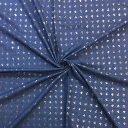 Lovely weight Chambray fabric embellished with a gold metallic multi spot design. Ideal for a host of projects from bags through to dresses and more.