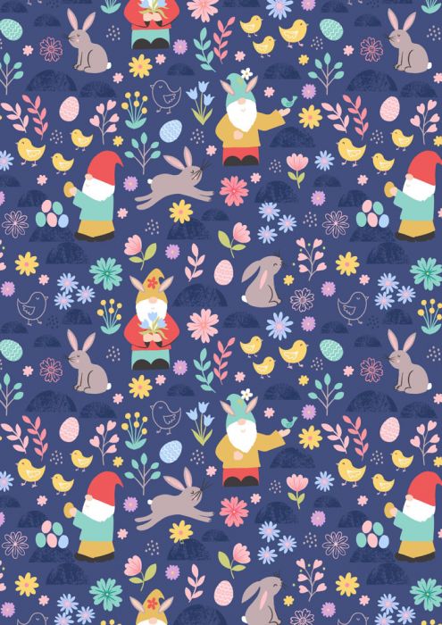 Spring Treats Fabric | Spring Gnomes Dark Blue