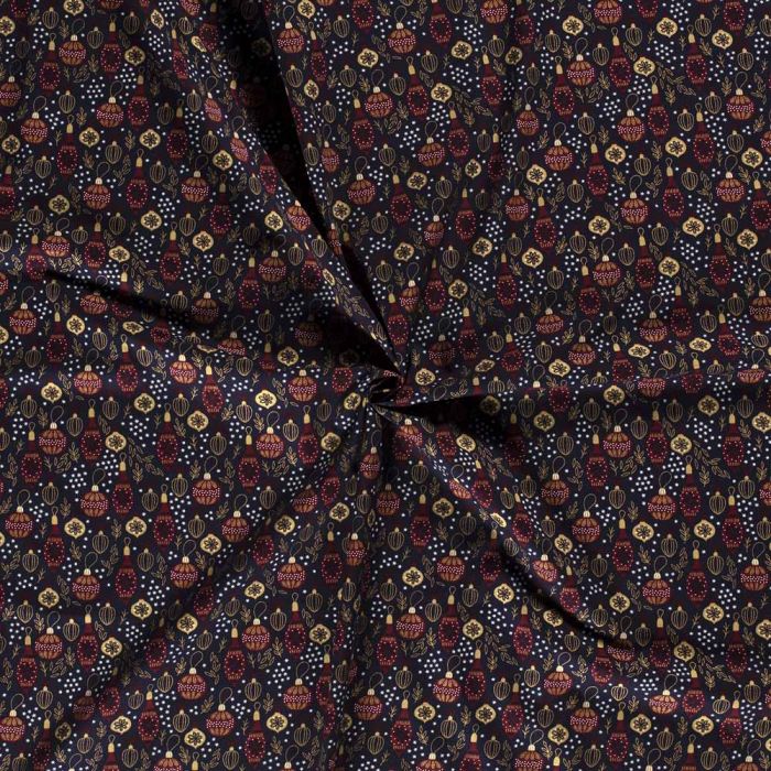 Stitch It, Christmas Metallic Fabric | Baubles Navy